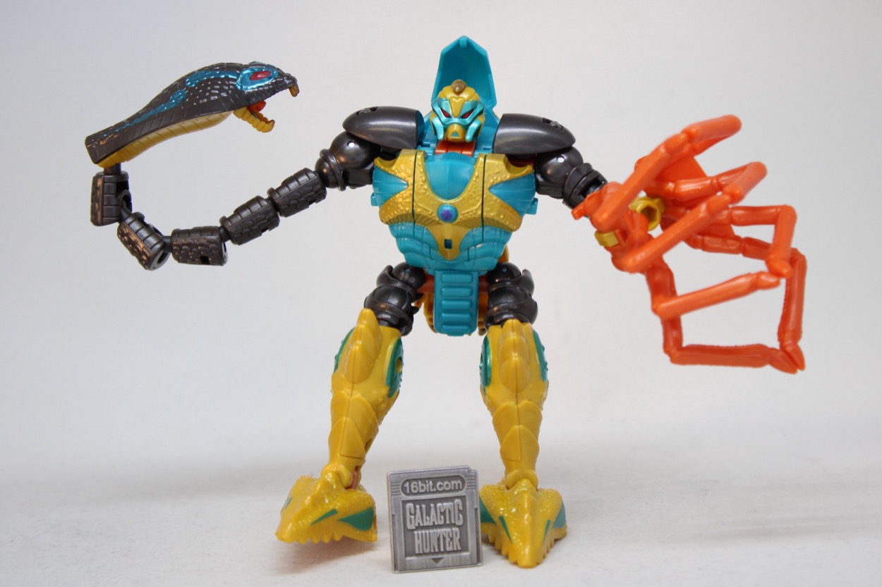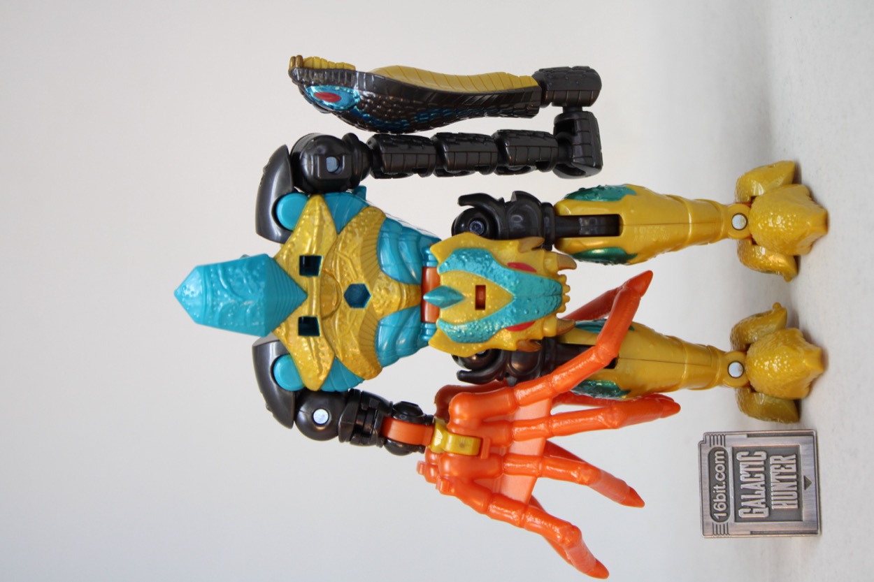 Thanks to all of you monsters having no respect, the original Kenner toy [FOTD #102] on which Age of the Primes Quickstrike was a based (and friends) were all shunted to massive Toys "R" Us clearance bins. I know this, because I bought the entire set at half price (or less) in 1998-1999 because I like cheap stuff. Being featured on the Beast Wars cartoon, both Silverbolt and Quickstrike were usually in shorter supply in the same way Injector was not. The whole idea was "What if Wuzzles, but also robots?" resulting in mash-ups from the genuinely impressive to the also-ran of the decade. Quickstrike was a scorpion with a cobra head on his tail in vaguely southwestern colors. It was a great concept, one that only disappointed by the two heads not squabbling on the cartoon.