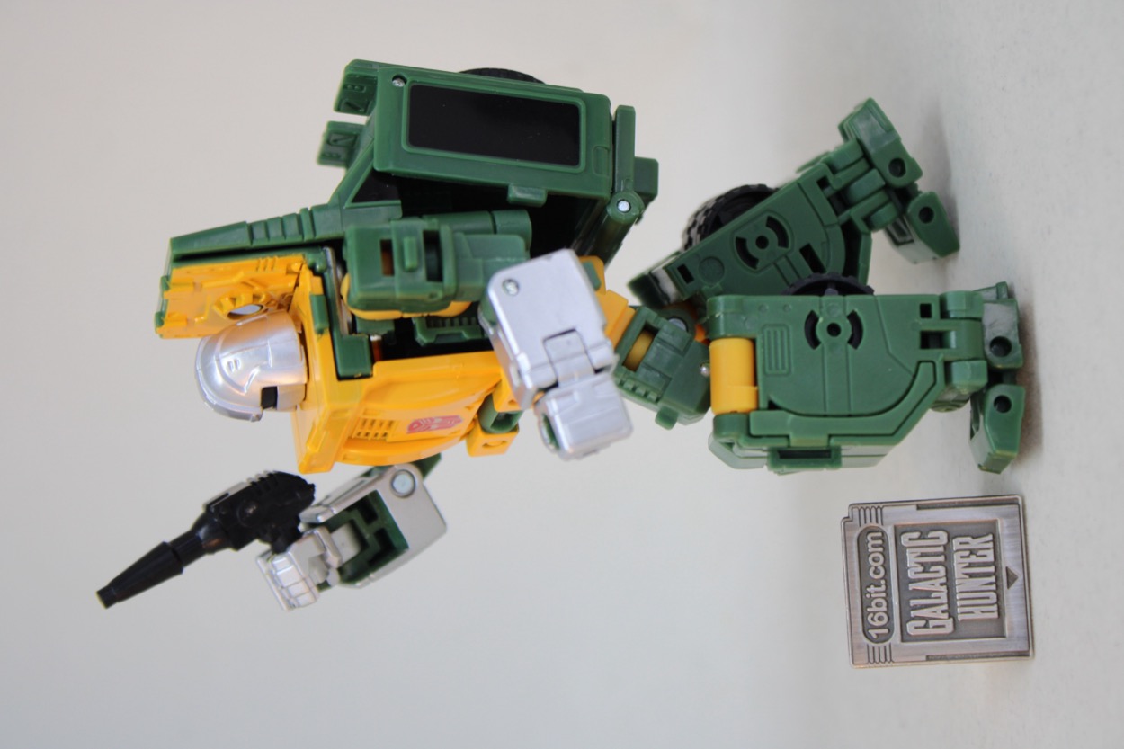 In terms of plastic, Hasbro made Brawn greener this time. Most of the yellow matches the previous release pretty closely an is more paint than petroleum. If you have other versions of this mold, your interest in it will probably rely primarily on if you had the original as a child. (I did!) If you like, you can rotate up his car grille and make a "bonnet" sort of like Huffer, and I think it really drives home the "toy" look a little bit more. Someone I know sent me a file of 3D printable hook hands last year which I'd love to use, but I don't have the tool to knock out the pins as of yet. I don't know if I want to knock out the fists necessarily, but if I can get a second one on clearance? Maybe I'll go get one of those pin-knocker-outers.