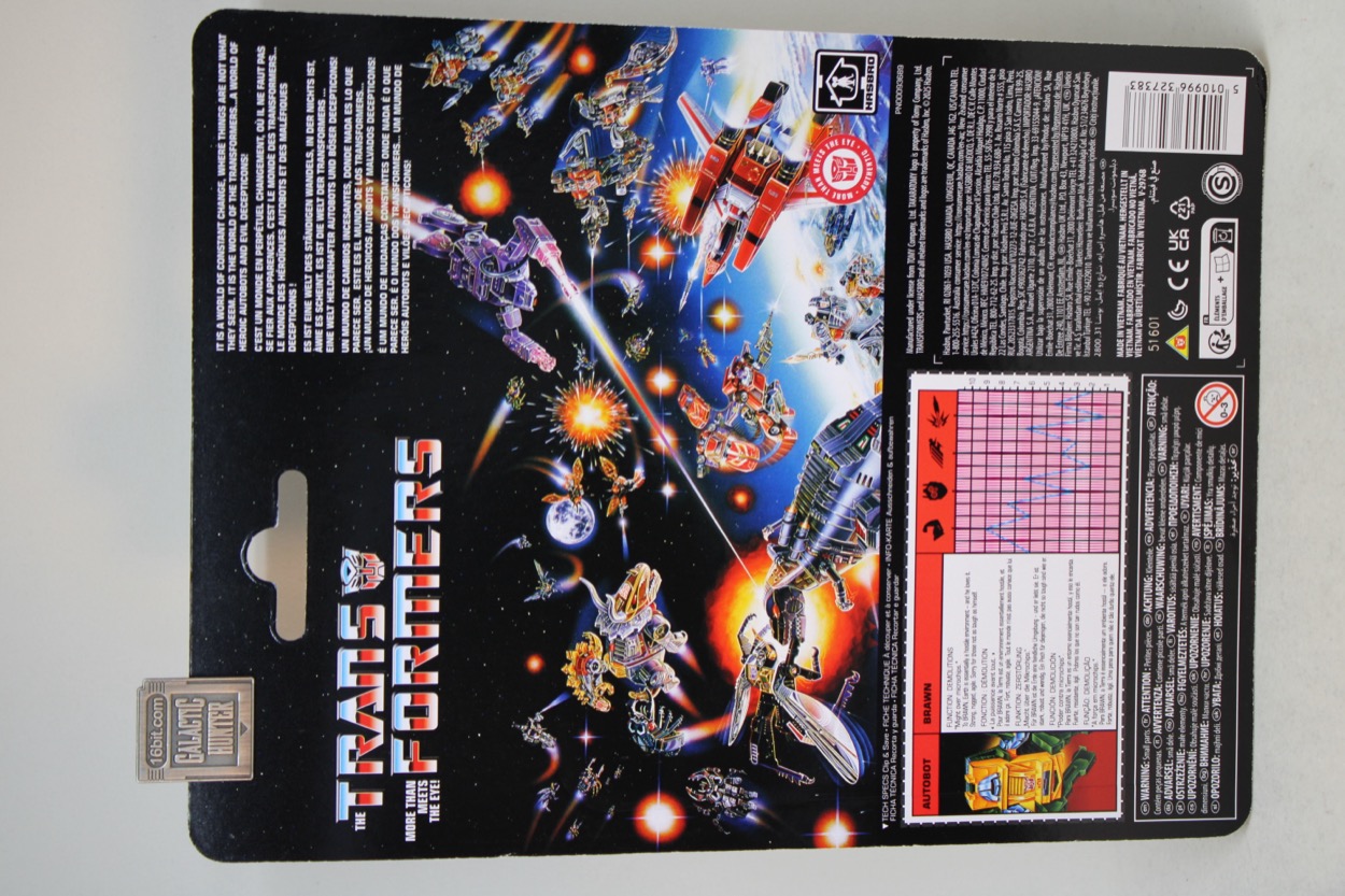 Hasbro's retro-pack Brawn is the lesser of two figures in the second wave... and he's pretty good. A version of this mold with the toy head was sold as Studio Series 86 Brawn a couple of years back, and later, a "dead" Brawn. This one aims to be the "toy" Brawn, using toy coloring and a toy-inspired head. But, you'll recall, the original toy had weird hooks for hands, a Jeep grille, and those panels hanging off his shoulders. It's not an exact 1984 upsized toy, but it's about as good as you're going to get from repurposing the 2023 toy's tooling.