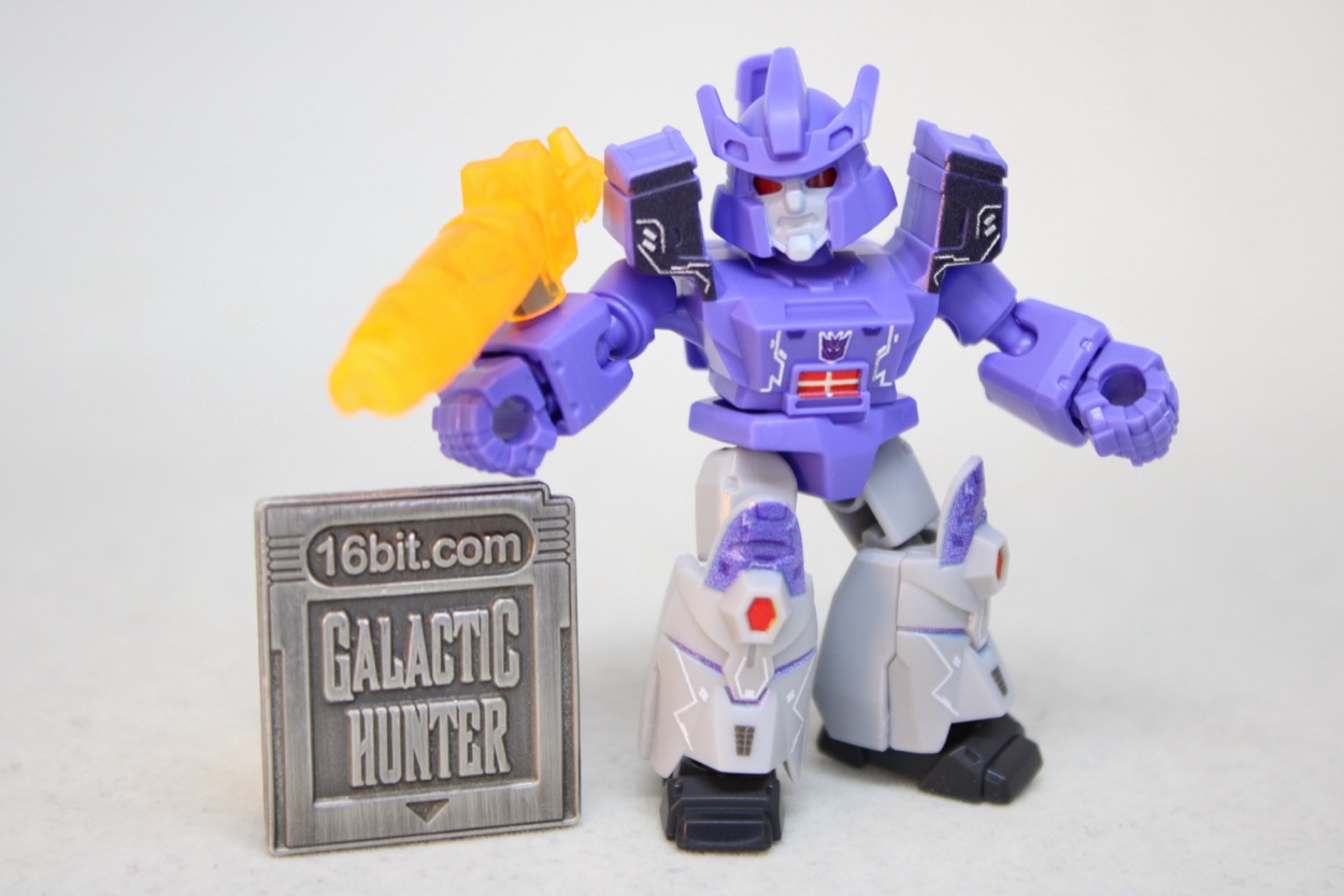 In each case of Blokees Defender figures you get at least one chase - this series it'll be either Jetfire or Galvatron. Since I found plain Jane Galvatron, I assume a fancy cool Jetfire awaits me in the next few boxes. It's a pretty great little figure, even without the fancy enhancements. He's got angry teeth, but sadly they're only painted white on the super duper chase 1:144 version. The orange cannon has a silver element on the back in both special versions... but the plain one is just orange. It's still neat, and I'd still have gone nuts for it about 25-30 years ago back when getting an oddly posed Super Collection Figure would be a huge win.