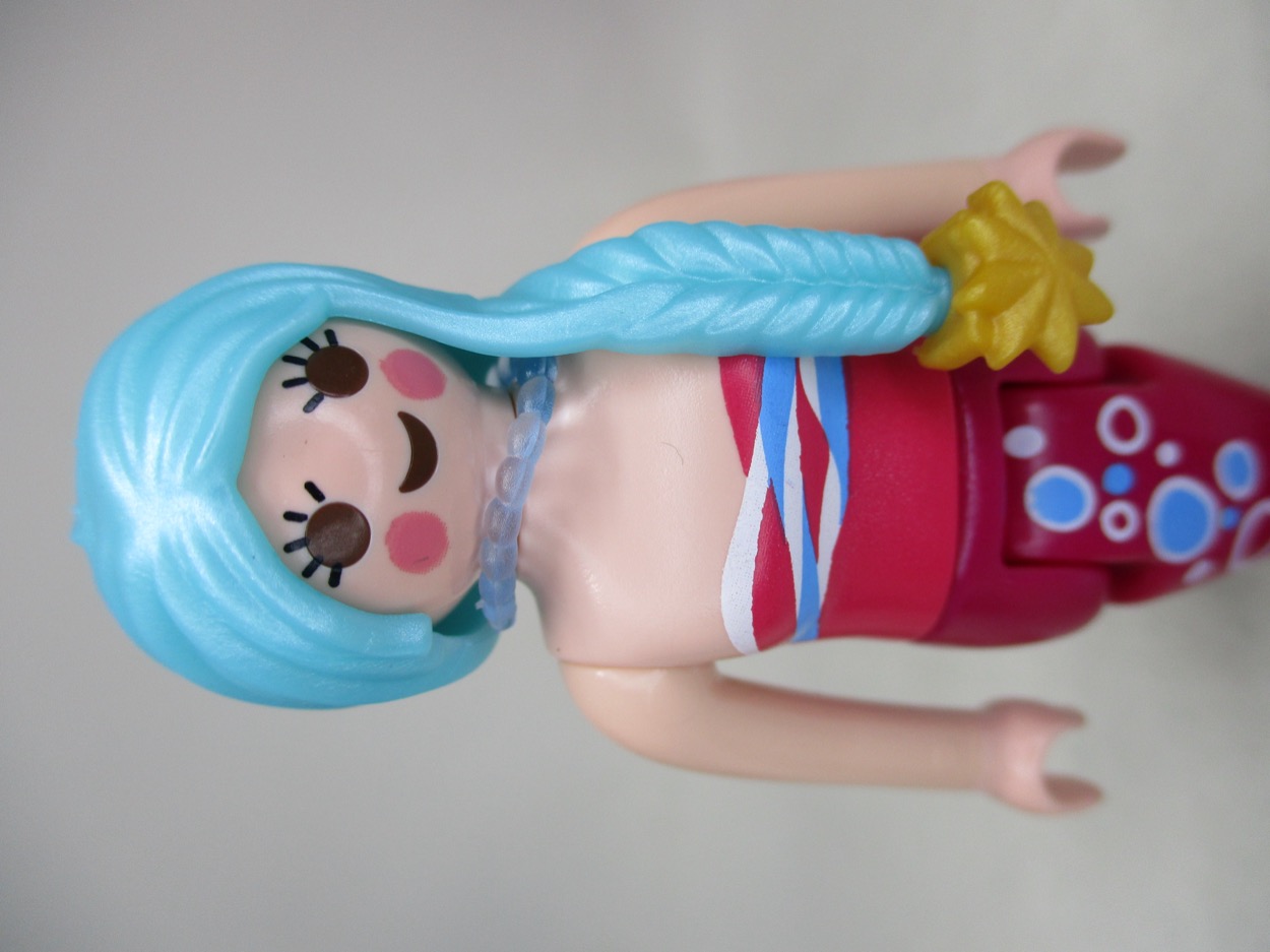 I got a lot of figures since I bought a whole case. The blue-hair Playmobil Mermaid is fine, but there are so many mermaids and mer-themes. They're really getting creative with them, bringing in nautilus gondolas and trident-wielding boys and even sunken ruins. Sadly, I do not have those, because if I did I'd be building a makeshift Sea Shrine from Final Fantasy. But I digress. Fish lady! There are a lot of fish ladies.