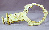 His action feature is a spring-loaded giant fist. The Ice Armor He-Man (which, you recall, has the same body) has a spring-loaded punching action located at the waist that seems as if it was intended for Battle Fist, and is missed since it isn't on him. The trigger is a little tricky, but once you get it going it's a nice little weapon. Our test subject, a Playmobil Ghost, was sent flying a respectable distance when hit with the mighty hand of Battle Fist, so odds are kids would like it.