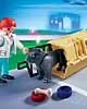 PlaymobilVetSo we've shown you dinosaurs, the 2007 catalog, and tons of other stuff. So are we done? NO. Today we look at the Tierarztin mit Hund und Flugbox, or for non-Germans, a female Vet with a dog and a dog carrier. (As "Tier" is "Animal" and "Arztin" is "Female Doctor." There's your German for the day, and our only application of four years of language courses since who knows when.) It's a pretty low concept set, but you get a vet with her coat, a dog, a carrier, two dog food bowls, vet tools, and more for what we assume will be $6 or so. It's part of a very extensive new airport theme which we don't expect in the USA until 2008. The line has so many unique sets in just this one expansion that it easily fits under the "spoiled child" toy line-- and if you factor in older sets like the airport security checkpoint, hot damn, you're in for a good time. (We should also add, it is our hope to be spoiled children some day, preferably before we hit 40.)