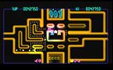 Gameplay: It's essentially the same as the original game. Essentially. Instead of one maze "board," imagine a screen with two. In the middle, there's the area from which the ghosts respawn. On the left, one maze. On the right, another. When you eat all the dots on one side, a piece of fruit reappears, and when you eat it, the maze on the opposite side reforms with new walls, new pellets, and other changes. There are no breaks between "stages," it's just a nonstop eating frenzy that lasts until the ghosts get you, or five/ten minutes-- depending on the mode. The game starts off slow but gets incredibly fast as you play, and we guarantee you've never seen the ghosts or Pac-Man move that fast before. It slowly ratchets up the overall speediness, but it needs to-- you're racing against the clock here. No matter how good you are, you can't beat the clock, and when the time runs out your game is over. The nice thing about this is that it makes it possible to have a "quick game" that lasts either five or ten minutes, and that's the end of it-- your super-awesome friend won't be able to hog the game on a single play all night long, like he may have been able to do with the originals.
