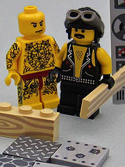 I saw a great article on The Brothers Brick showing off custom-printed minifigures and bricks from Citizen Brick. It's positively glowing-- the guy uses real LEGO bricks and matches real LEGO colors when it comes to printing. As you can see in the picture, these aren't necessarily things LEGO might make in their usual sets. I mean, seriously, wood printing?