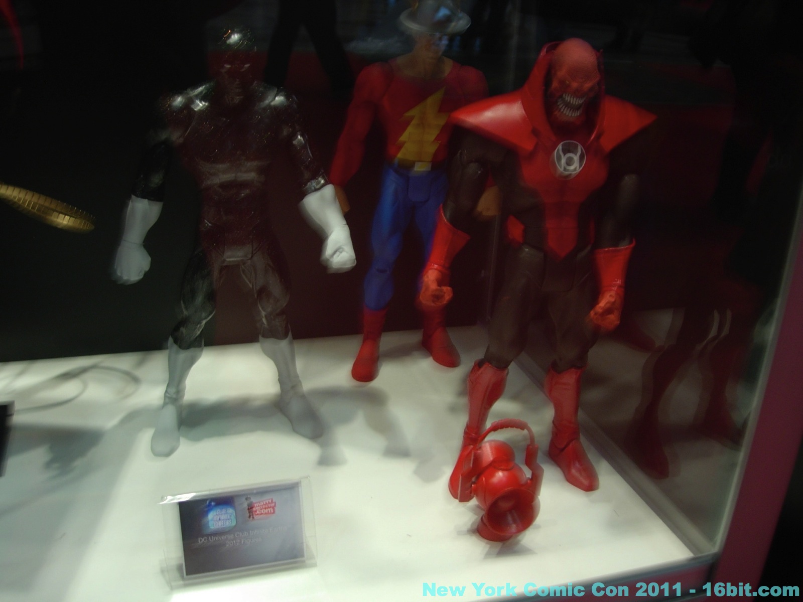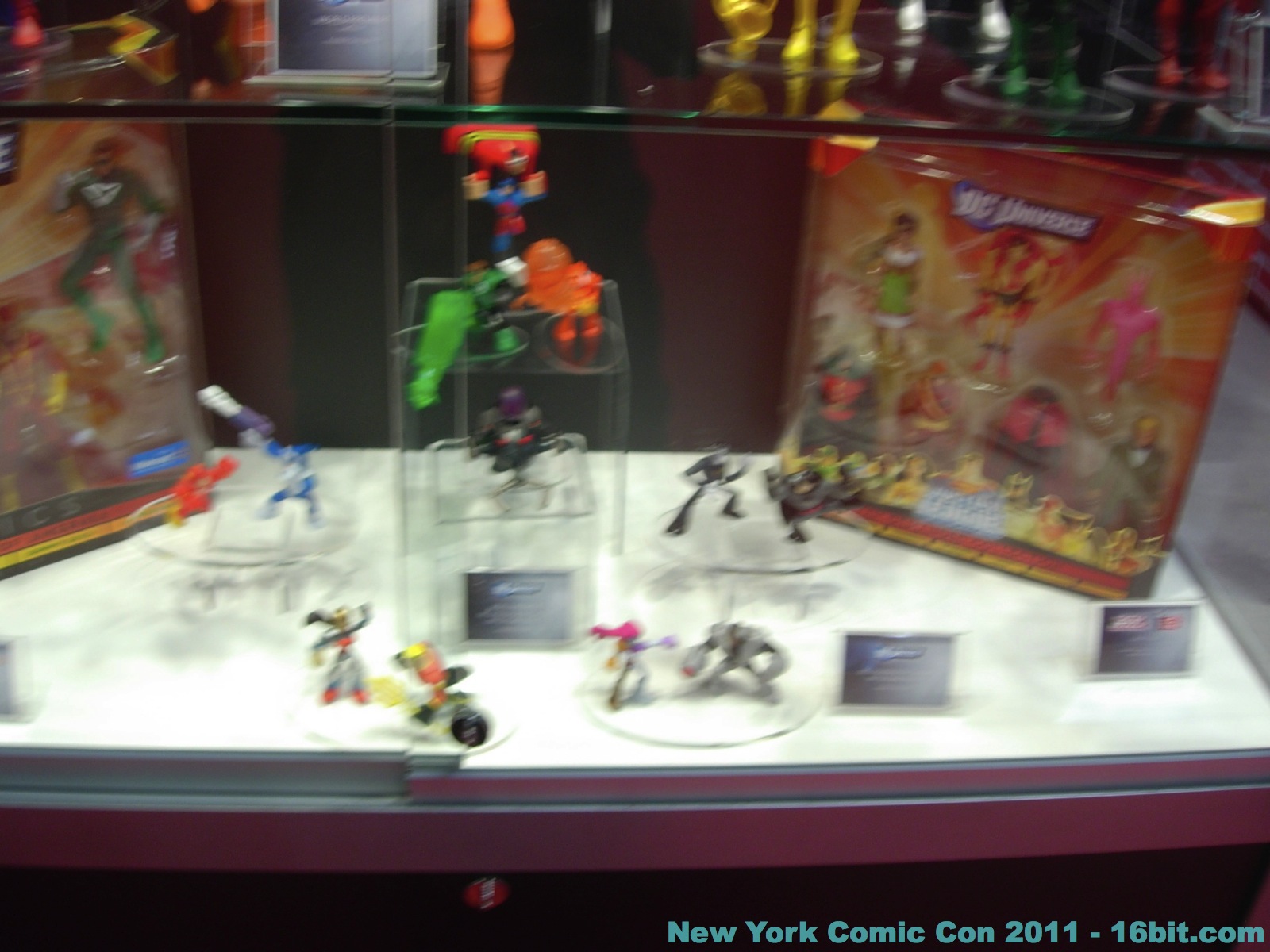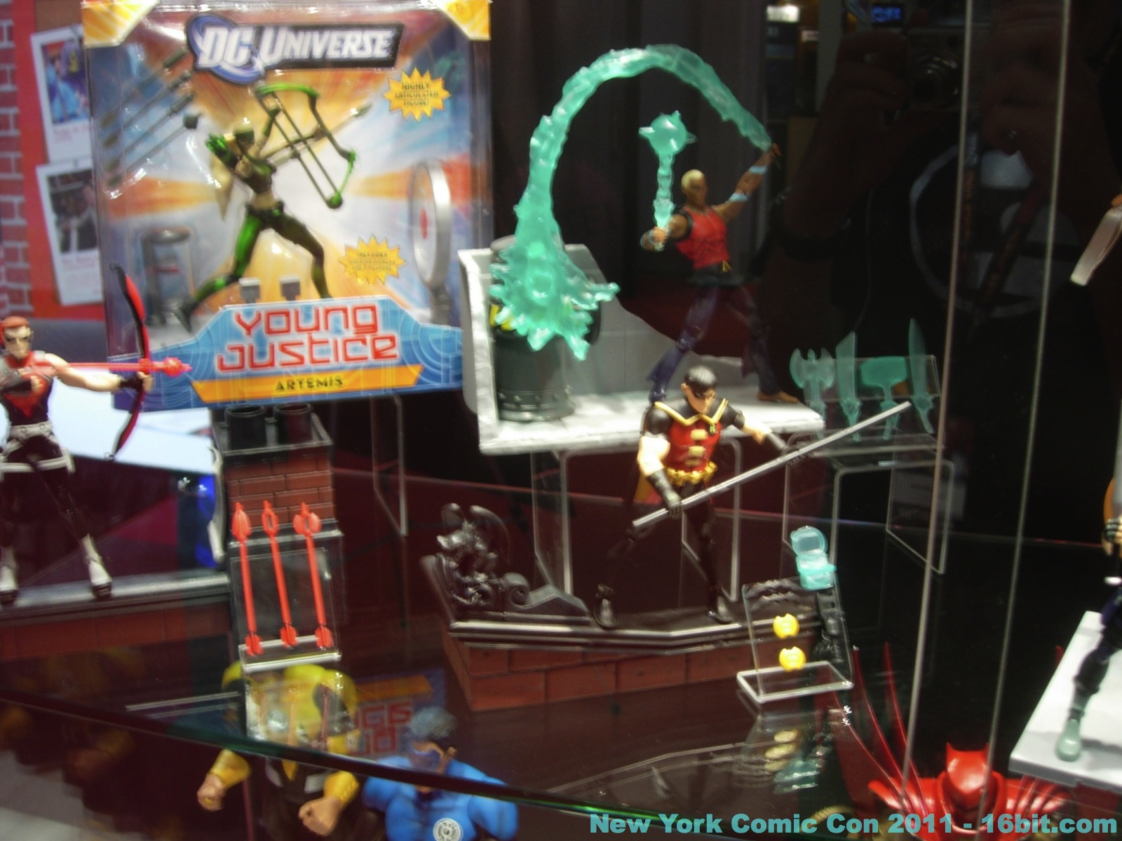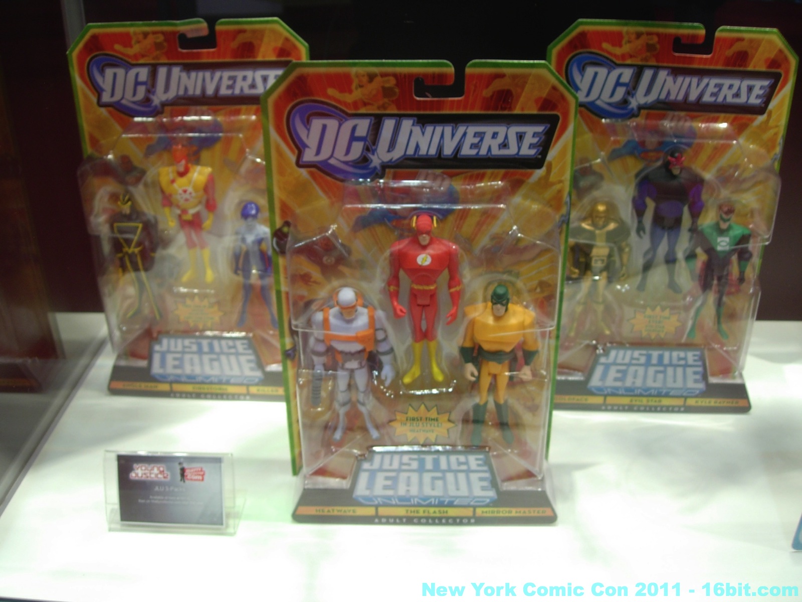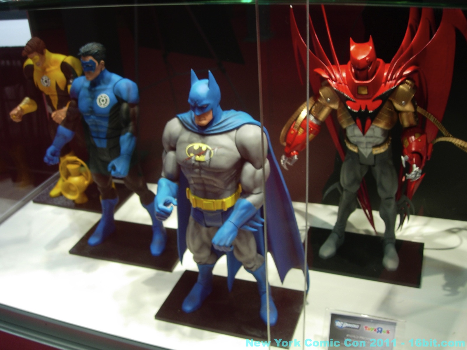 No new exclusives! A number of SDCC exclusives from July were brought to New York, but nothing new was on sale at the show-- which is good for people that have to travel to hunt this stuff down. Few new items were revealed, but you can get in-package glimpses of the latest Green Lantern Movie Masters which also has a complete Parallax build-a-figure. Two-ups (I assume) of new Toys R Us 2-packs bring Batman, and new versions of Hal Jordan back into the line-- again-- because we love them. A Super Powers-inspired Penguin was a delight to see, with its blue outfit and matching top hat. Young Justice had a few new things out, but given that I was working the show as well as snapping photos I didn't have a lot of time to re-check for new additions throughout the show. So here's what I saw.