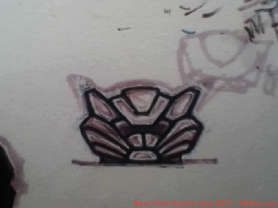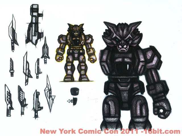 So here are two quick shots I took on a bench in their booth, plus a slice of concept art with weapons Matt was kind enough to share. For more on Onell Design, go here.
