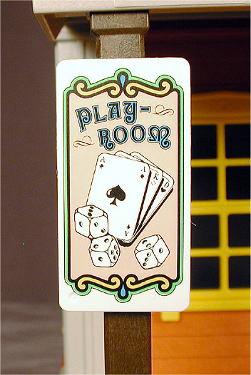These add a lot to the front of the building, as do the railings and the posts. Of course, the posts in and of themselves are just fine, but what really makes them special are two added signs.
