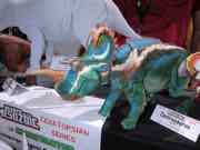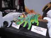 Meet David Silva! You already know his work-for-hire with creatures from a number of big toy companies, like Hasbro and NECA. I've already got a bunch. We wrote a bit back and forth a long time ago, and I finally got to meet him and see his stuff on Preview Night. He's famous for his Beasts of the Mesozoic Kickstarter raptors, which are freaking gorgeous. His follow-up to the 1:6 scale killer feathered turkeys is a 1:12 line of Ceratopsians - that makes the latter scale to Marvel Legends, the One:12 Collective, and their ilk.