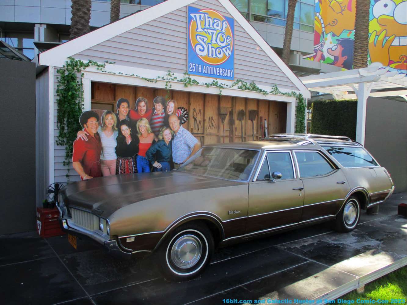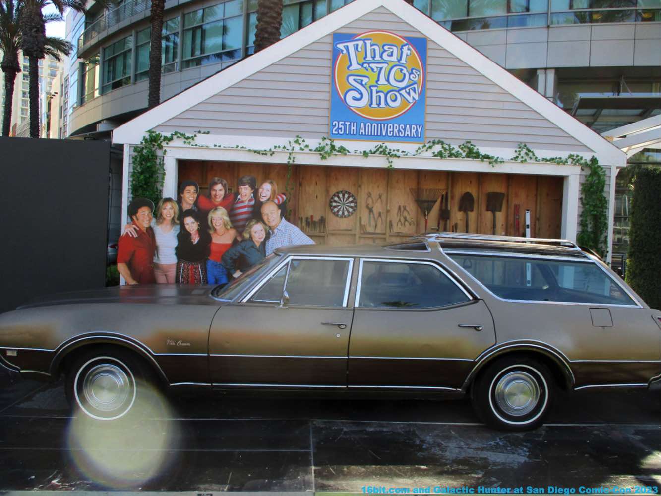A panel on the show was canceled, but the antenna TV channel LAFF (mostly populated by Carsey-Werner reruns) had a display outside the convention center with the Vista Cruiser, which I believe is/was owned by Wilmer Valderrama (Fes on the show, also many other things.) They also gave away some key chains at the car and a postcard advertising a 25th anniversary thing on Laff August 21-24 2023, but not specifically what it was. Is this effective marketing? Well, you're reading it aren't you?