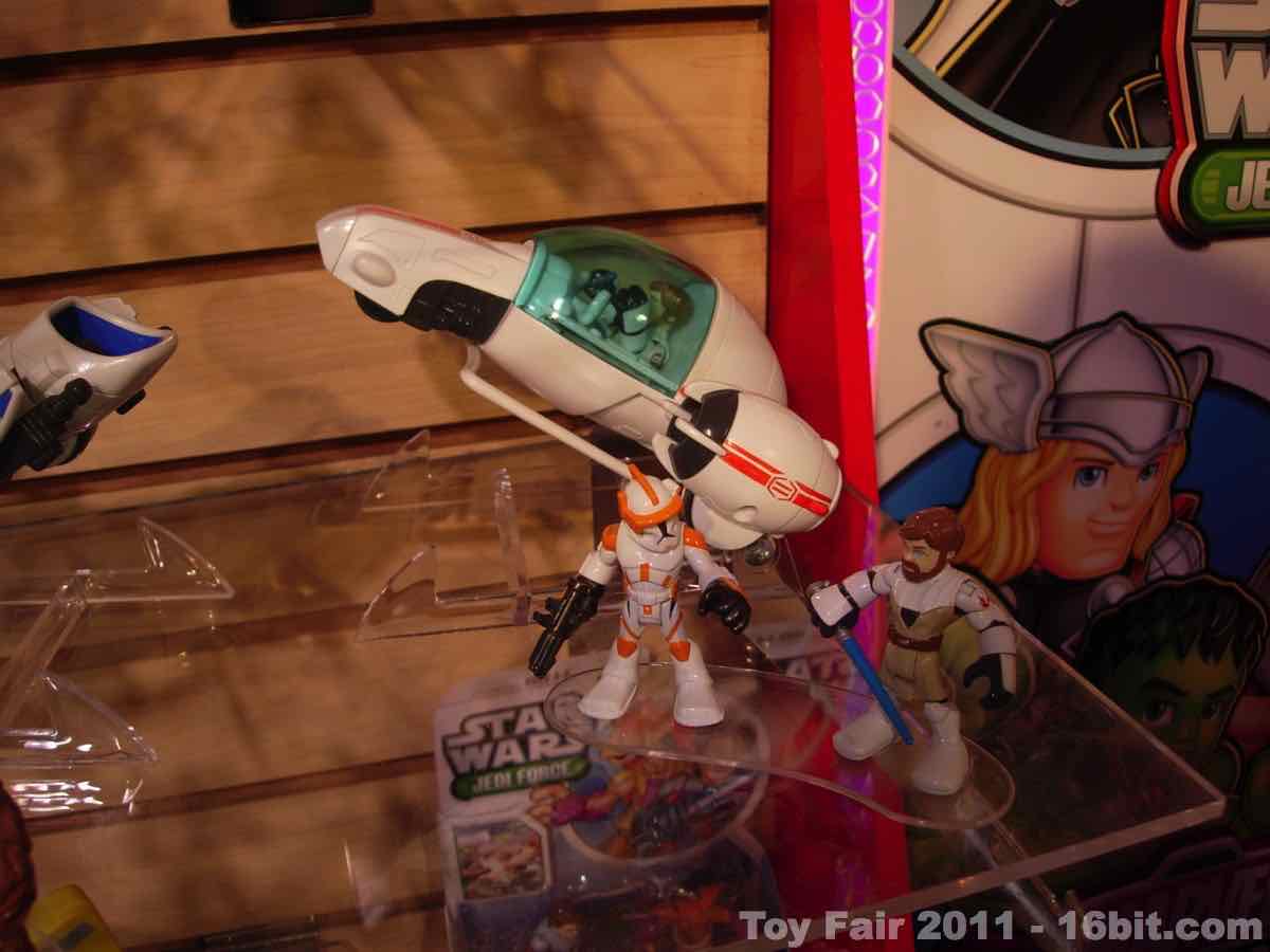 Galactic Heroes are Dead! Long live Playskool Star Wars Jedi Force, Transformers Rescue Bots, and Marvel Super Hero Adventures! The older chunky figures are being phased out, much to the dismay of the collectors of these lines, in favor of similarly sized figures which stand upright and sport more articulation. The Star Wars range focuses on the original trilogy and The Clone Wars, while the Marvel range is largely a smattering of their key characters and Transformers seems to be either a G1 offshoot or something new entirely-- the only old characters are Optimus Prime and Bumblebee, and there are no decepticons.