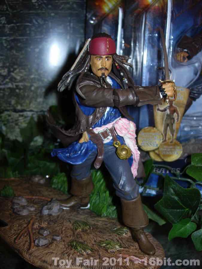 The re-re-return of Captain Jack Sparrow! Housewives and people who dress up for renaissance fairs, rejoice! The fourth movie in the moneymaking Pirates of the Caribbean franchise is back, and by "is back" I mean "right now." The Saturday following Toy Fair 2011, I saw these at a Toys "R" Us-- they're not wasting any time getting these out.