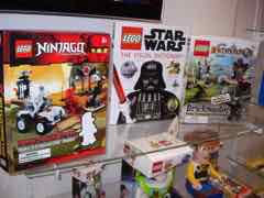 In addition to the books and toys, there were also a number of electronic items like a giant LEGO Darth Vader Flashlight-- basically a big figure with light-up feet. Numerous clocks and even some USB drives were also shown, and of course apparel and various school supplies sized for kids or extremely petite ladies who might be fishing for a nerd boy(or girl)friend. I'm just sayin', ladies, cram into a large boy's LEGO Star Wars T-shirt and you'll be beating off the toy dorks with a stick.
