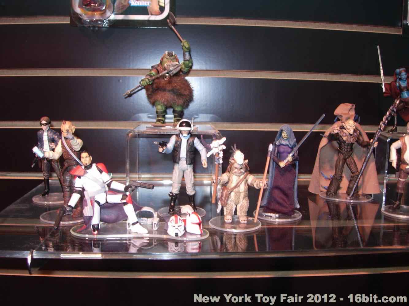 Along with the delayed Vintage Collection figures shown over a year ago, 20 new characters were shown including Fan's Choice Mara Jade. Way to exercise that vote, fans. New characters from The Old Republic will be sprinkled throughout the year, as will Vintage updates like Lumat, Prune Face, Nien Nunb, Weequay, the Emperor's Royal Guard, and Nikto from the 1983-1984 line. There will also be a variant packaging this summer-- instead of foil or "Revenge" of the Jedi, a blue-and-black style based on an abandoned Vintage 1980s Kenner design will be employed for at least 6 figures. It's not a bad idea. If everything makes it out, we'll see at least 115 Vintage figures as of this year. Not bad! (And yet, still no Power of the Force cardbacks.)