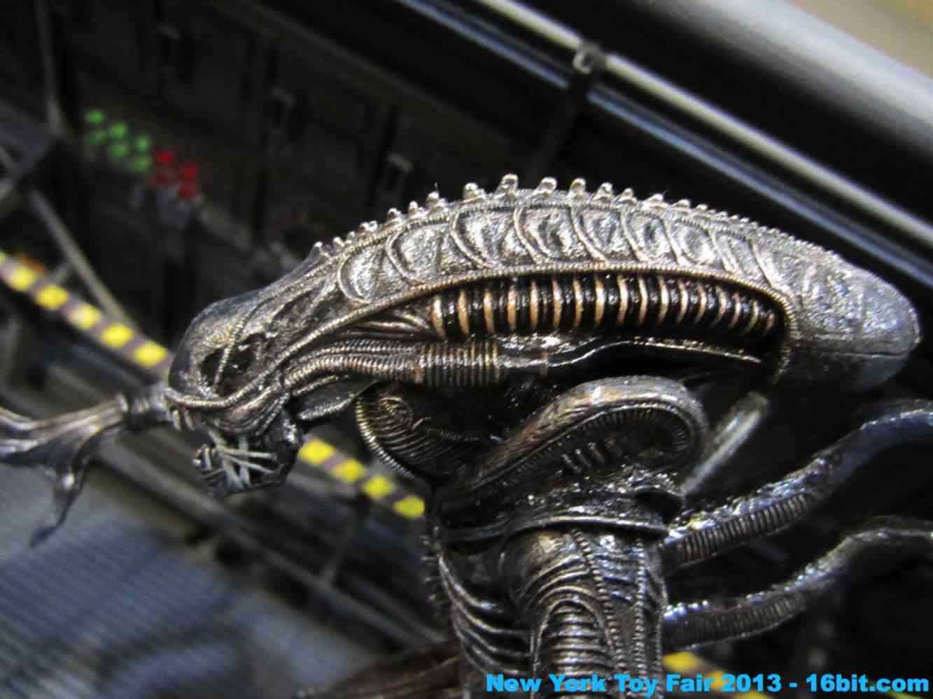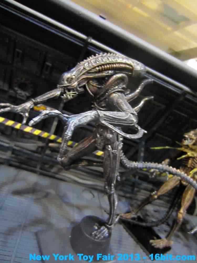 The marines have exceptional detail and tons of articulation, while the xenomorphs have brown or blue exoskeletons plus different heads... like an exploding head, which is definitely a new detail to this line. (Sure, we had the Kenner Scorpion Alien with the exploding torso, but with not nearly as much splatter.) The signs at the show teased Marine vs. Warriors 2-packs, although so far we've seen Hicks, Hudson, and the Warrior figures solicited as single, individually-packaged releases. As each Marine was said to have alternate sculpted heads on the horizon, maybe this is where they will show up? No other marines were confirmed, nor was Ripley, whose likeness is said to not be included in pretty much any movie license ever these days.