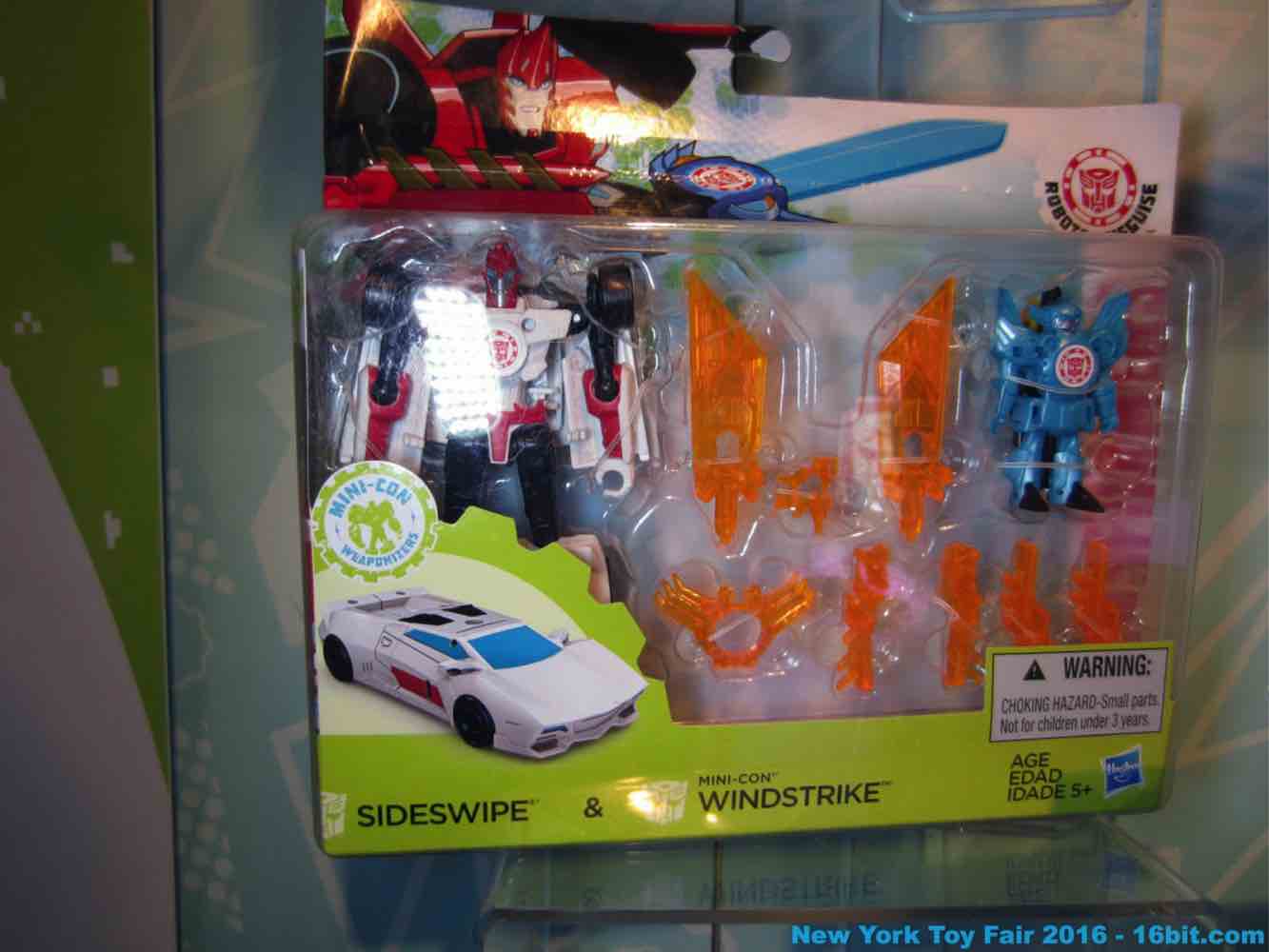 Transformers Robots in Disguise! This turned out pretty well - there aren't a lot of exciting new entries here as Hasbro plays it somewhat coy about the line's future. Supposedly we're getting more shows and I'm hearing buzz of line extensions. I can say we're getting Strongarm with Sawtooth, another armor pack. Those things are fun. New Mini-Con single packs can become weapons or dinosaurs, like Tricerashot - a dinosaur gun. How awesome is that?