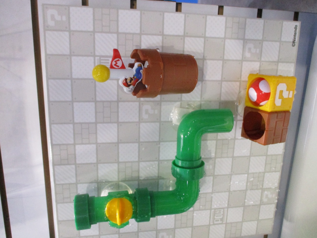 The My Mari line for kids was also pretty neat. These were tub toys that play up water and pipes, which are things that were present in the very first Mario Bros. game but aren't always a huge part of the game series. There were a number of little baby toys and toddler toys too, showing that Nintendo probably still has faith in Mario as a quasi-Mickey Mouse character that kids will look at and recognize as a fun, iconic mascot that might stick with them for their childhoods and beyond. It was fun to see the demo, which had a little bit of water in a tub.